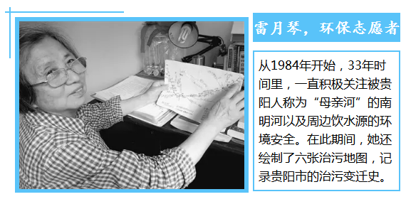 自1984年退休后,眼見隨著城市發展,南明河污染日漸嚴重,又因為幼年時有過喝不干凈的水而差點病死的經歷,雷月琴老人萌生了要保護飲水源的念頭。從2008年開始,她用七年時間手繪了六張治污地圖,記錄了從1994年到2015年南明河的治污歷程。在這些地圖上,老人用紅筆標注了當年的污染嚴重河段以及沿岸的電廠、造紙廠等污染大戶。而如今,這些污染大戶都已經搬離了南明河。
