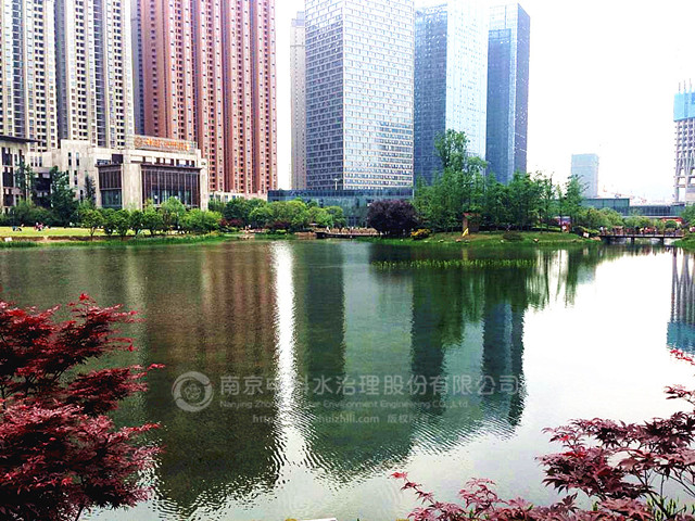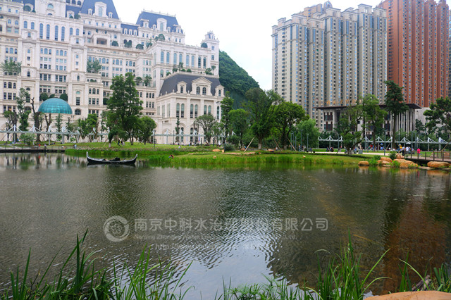 南京中科水治理股份有限公司于2013年12月10日開始,對景觀湖進行清水型生態(tài)系統(tǒng)構(gòu)建工程,實施的主要內(nèi)容有:水體透明度提升、挺水植物、沉水植物群落構(gòu)建,魚類、大型底棲動物群落構(gòu)建,水質(zhì)指標監(jiān)測,及養(yǎng)護管理。2014年2月17日,清水型生態(tài)系統(tǒng)構(gòu)建工程較計劃提前1個月完工并通過驗收。至今,主要水質(zhì)指標仍達到《國家地表水環(huán)境質(zhì)量標準》GB3838-2002Ⅱ類水標準,超過合同規(guī)定的 Ⅳ類水要求,水質(zhì)清澈見底,水生動植物多樣性提高,有效抑制了水體富營養(yǎng)化趨勢。